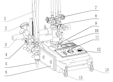 2.橫移手輪:調節割炬的水平位置 |