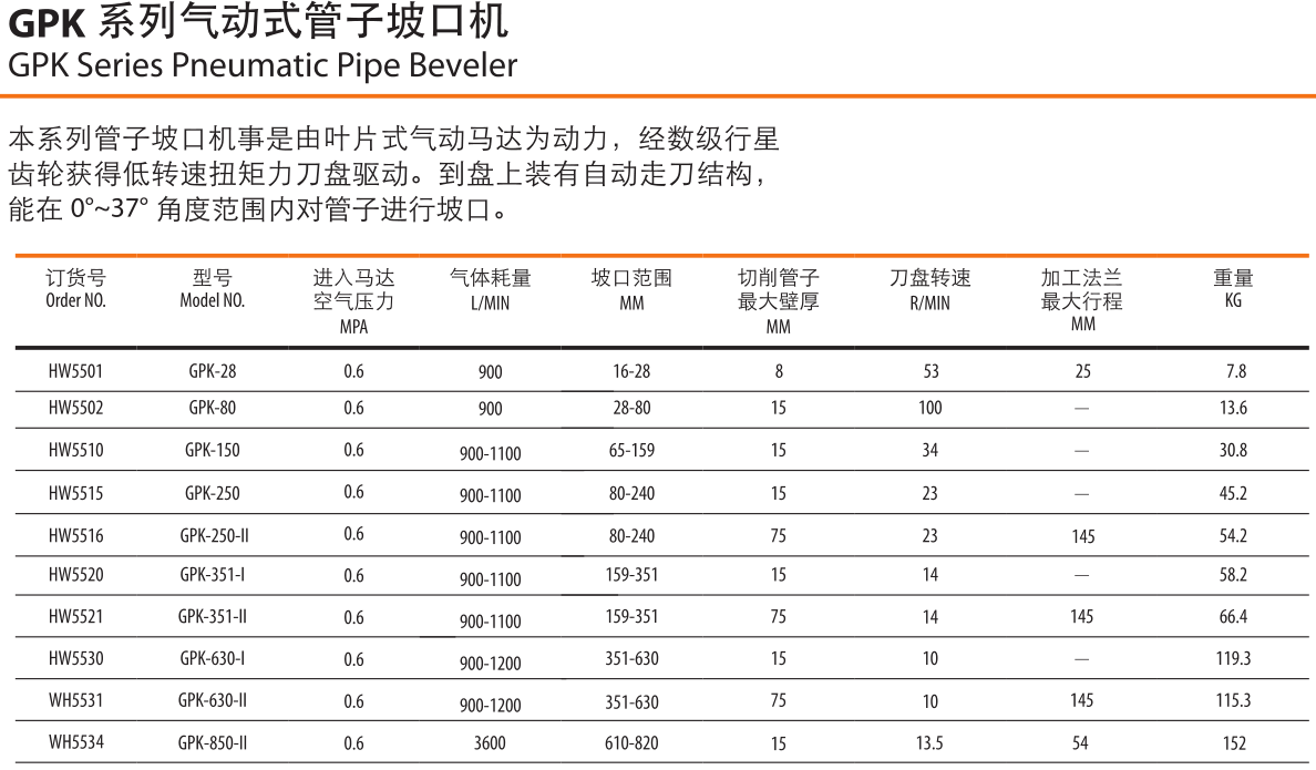 GPK系列坡口機(jī)專為鋼管的倒角、焊接坡口的切削而設(shè)計(jì)。其采用氣動馬達(dá)作為動力,內(nèi)漲式結(jié)構(gòu),自動定位鋼管中心,操作方便。本機(jī)可對鋼管進(jìn)行倒角、焊接坡口及法蘭平面進(jìn)行加工。無論管壁厚薄,其加工性能與效率比起傳統(tǒng)工藝都有著不可替代的優(yōu)勢。