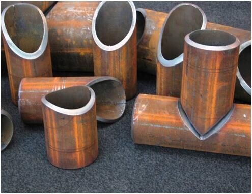 設備采購回來并安裝就位后,首先由技術人員將隨設備附帶的操作程序安裝在電腦上,在進行生產前將相關數據輸人事先安裝好的操作程序,程序設定操作流程如下:選擇要切割的部件方式_選擇支管連接類型_選擇支管端頭切割方位_輸出數據_查看三維效果圖一填寫相關數據。切割數據編制完成后,將輸出的數據用U盤拷貝至現場的切割設備,進行數控切割作業。每次導出數據為兩組,一組為主管切割數據,另一組為支管切割數據,在切割時分別選擇不同的切割程序就可以完成相關切割作業。本實驗采用等離子進行切割作業。以材質為Q235B,0219 mm x 6 mm的焊接鋼管為例,根據實驗記錄數據:采用手工方式進行一道馬鞍口的切割作業,從劃線、放樣到最后完成切割、修正,至少需要10 min以上的時間;而采用數控切割機切割同樣的一道口,編程時間為110 S,數據拷貝78 S,相貫線切割時間58 S,合計246 S,而且編程一次可以完成相同管件的連續切割作業。由此可以看出,采用管道數控切割設備大大地提高了切割效率。采用數控切割機切割后的焊口尺寸精確,可以達到0.001 mm(國標一般要求0.1 mm,高出國標100倍)。切割的成品不但一次成形,而且成型美觀,不需打磨,省去了后續人工打磨程序的同時,也減小了誤差的產生。數控切割機設備操作非常簡便,只需技術人員將編好的切割數據拷貝至切割設備,由1名火焊工人就可完成后續的切割作業。