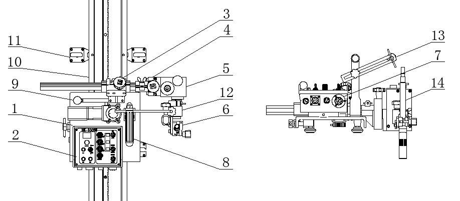 4焊炬升降滑塊。是調節焊槍位置的裝置,焊接當中可以進行上下的微調。