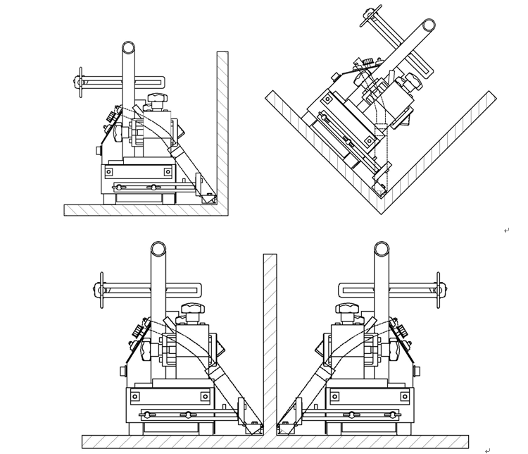4.磁鐵離合手柄:手柄置中向上,磁性為關閉狀態;手柄各左或向右旋至與兩驅動中心線平行位置,磁性為打開狀態。 5.焊槍微調裝置:用此裝置可以很方便調整焊槍對準焊縫。 |