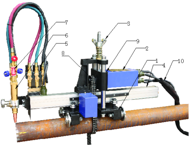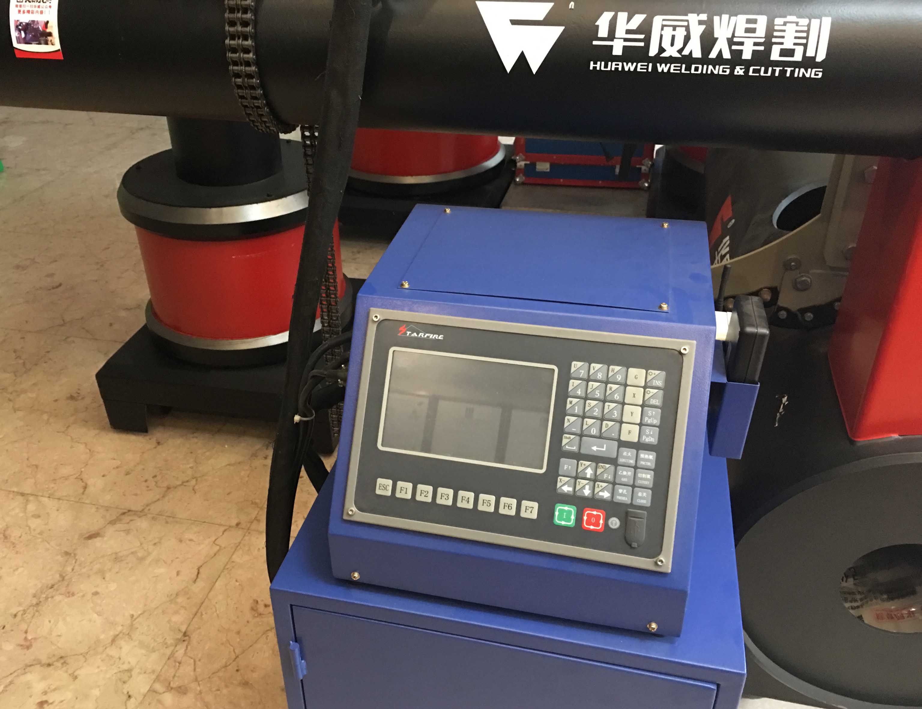 本機是一種對鋼管端部結合處作自動計算和切斷的設備。該機器能廣泛應用于建筑、化工、機械、冶金等行業的管道結構件的切割加工。這些行業中有大量的管道結和相貫線孔、相貫線端頭,還有俗稱“蝦米節”的彎頭,此類加工大多采用制作樣板、劃線、人工放樣、手工切割、人工打磨等落后又繁復的方法來進行。而本機能十分方便的切割此類工件,并且操作人員不需計算與手工編程、只需輸入相互配合的管子的半徑、相交角度等參數,機器就能自動切割出管子的相貫線。