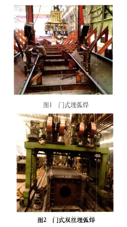 鋼結構具有自重輕、建設周期短、適應性強、造型美觀、維護方便等優點,其應用越來越廣泛,而鋼材本身具有材質均勻,質量穩定,強度高,塑性韌性好,抗沖擊和抗振動能力強等特點。經歷了汶川和日本大地震的考驗后,高層鋼結構、空間鋼結構、橋梁鋼結構、輕鋼鋼結構和住宅鋼結構等工業與民用建筑如雨后春筍,遍布全國。鋼結構主要的結構類型為H型鋼柱/梁、箱型柱/梁,常規的H型及箱型構件采用門式埋弧焊進行焊接,但是<350mm箱體截面采用門式雙絲埋弧焊。由于H型鋼翼緣板較寬且截面較小,焊機機頭與H型鋼翼緣板干涉,使門式埋弧焊無法正常施焊,所以針對以上焊接問題,結合現場工作實踐經驗制作了無軌同步雙邊焊接小車,在使用的過程中既保證了焊縫的內部質量,也提高了焊接的生產效率。