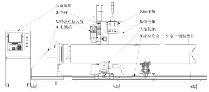 本機是一種對鋼管端部結合處作自動計算和切斷的設備。該機器能廣泛應用于建筑、化工、機械、冶金等行業的管道結構件的切割加工。這些行業中有大量的管道結和相貫線孔、相貫線端頭,還有俗稱“蝦米節”的彎頭,此類加工大多采用制作樣板、劃線、人工放樣、手工切割、人工打磨等落后又繁復的方法來進行。而本機能十分方便的切割此類工件,并且操作人員不需計算與手工編程、只需輸入相互配合的管子的半徑、相交角度等參數,機器就能自動切割出管子的相貫線、相貫孔、以及焊接坡口。